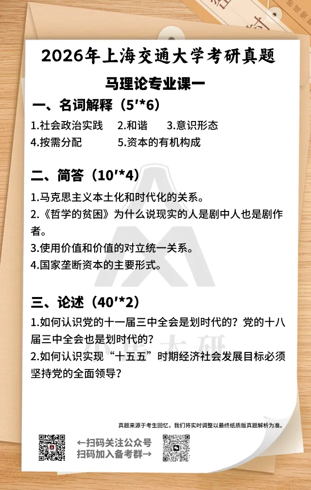 这里给准备考上交的同学提个建议:备考要从课本入手,先把课本知识彻底吃透,做到对所有细枝末节的内容都了然于胸;与此同时,也要多花些时间去研究原著,深入挖掘原著里的核心知识点,在此基础上做好拓展和深化,这样才能更全面地应对考试。