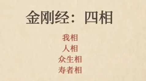 此“四相”是一切执著的总根源。其核心是“我相”,后三相皆由“我相”派生。有我,便有对待的人、纷繁的众生、相续的寿命。