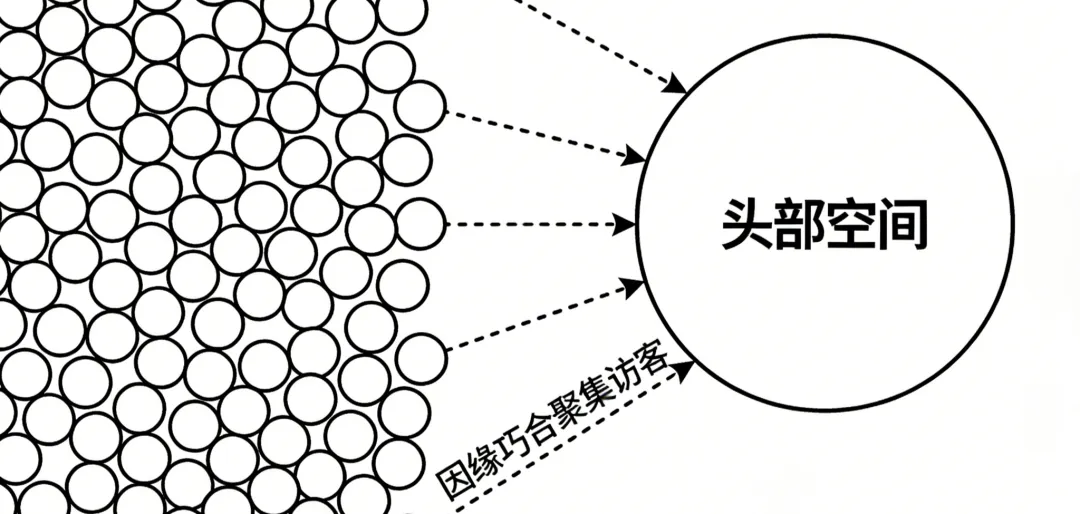 顺着这个话题继续延伸,高斯空间发展到一定阶段,必然会形成“头部空间”。不过要说明的是,这类头部空间能吸引大量访客聚集,不一定是因为它本身有多“优秀”,更像是网络上很多网红突然爆火,带有一定的因缘巧合属性。但关键在于,只有先有大量的空间作为“土壤”,才能催生出这样的头部空间。而头部空间一旦形成,就会包含各类特色场景——比如借助投载设备呈现的、突破现实维度的独特画面,这又会进一步吸引更多访客,同时也为商业链接的植入提供了基础。