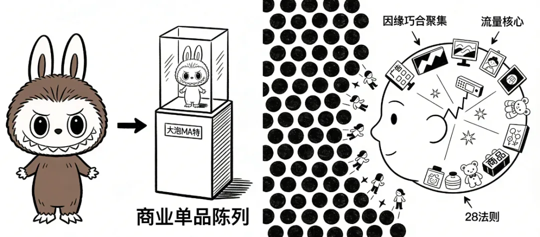 在获得相关方允许的前提下,我们可以在头部空间中融入广告系统,或是陈列艺术品、潮玩等商业单品:比如将不知名艺术家的作品放入头部艺术家的空间展示,或是引入泡泡玛特这类商业机构的单品进行陈列。说到底,高斯空间的商业价值核心依然离不开流量逻辑,万变不离其宗还是围绕流量进行推算。一旦某个空间的“会客厅”成为大众聚集的核心场所,就会遵循“28法则”——少数头部空间占据大部分流量与商业机会。