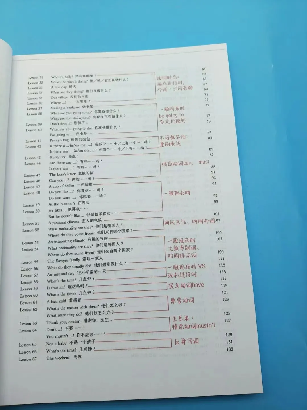 ❶ 拒绝黑白枯燥!每课都用不同色系区分主题,动词、名词、介词用不同颜色标注,视觉记忆超深刻,记知识点像看漫画一样轻松~