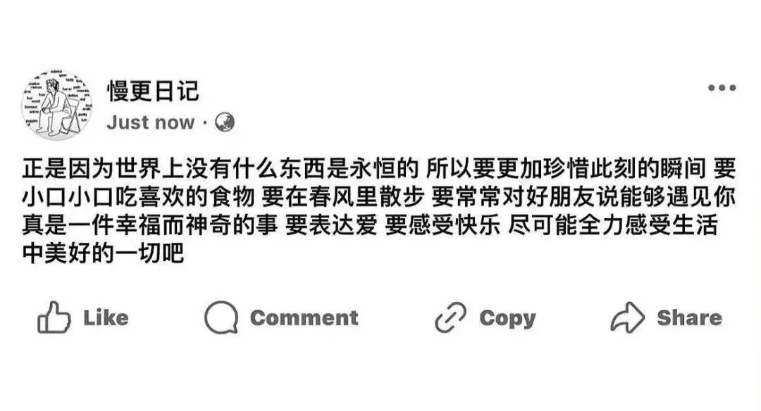 既然非做不可之事已越来越少,未来难以预料,反而可以在意此时此刻,“乐呵乐呵得了”?