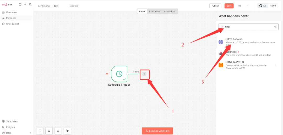 下面搭建一个n8n定时采集数据到飞书多维表格的工作流。