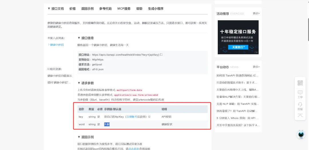 这里需要提前准备API数据接口,注册数据平台:https://www.tianapi.com/。