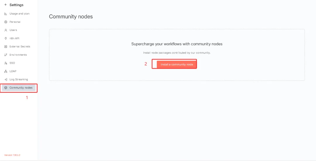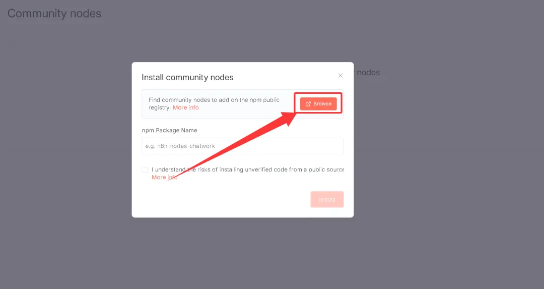 点击Community Nodes,然后点击安装。