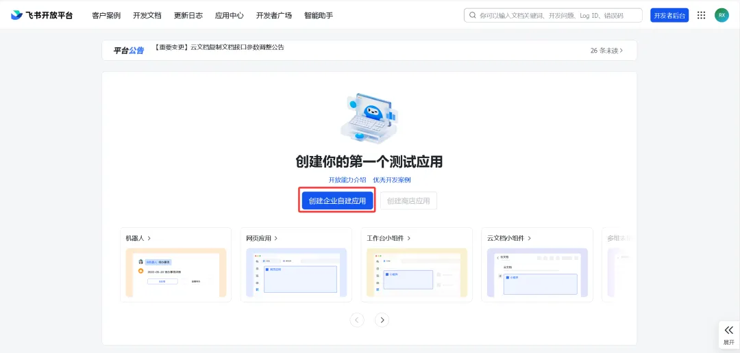 首先打开飞书开发者后台,创建企业自建应用:https://open.feishu.cn/app。