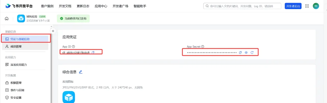现在还需要接入飞书多维表格,创建应用获取App ID和AppSecret。