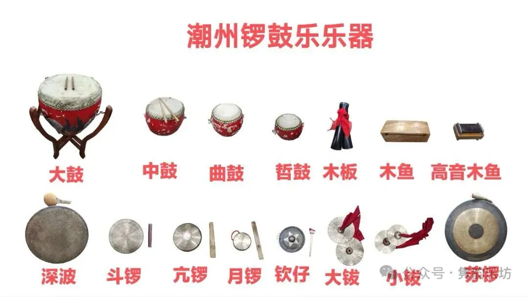 潮州锣鼓乐是潮州音乐的一个品种,其中包括:潮州大锣鼓、潮州小锣鼓、潮阳笛套锣鼓等等。潮州苏锣鼓是民间器乐乐种,流行于广东潮州地区。它以苏锣代深波,是潮州大锣鼓的变体,所用乐器有笛,笙,箫,管等吹奏乐器和大鼓,苏锣等打击乐器。传统曲目有《宴灯楼》,《倒骑驴》等。近年创作的有《万里江山春一色》等新曲目。