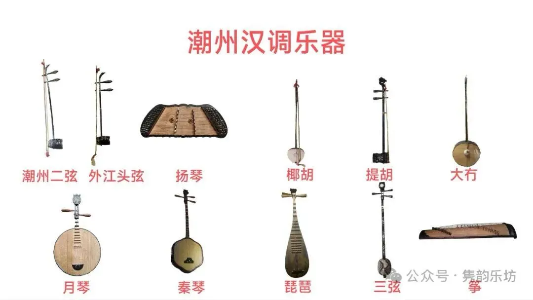 其乐队的编制除将领奏乐器外江头弦易为潮州二弦外,其余与潮州丝弦乐队相同。