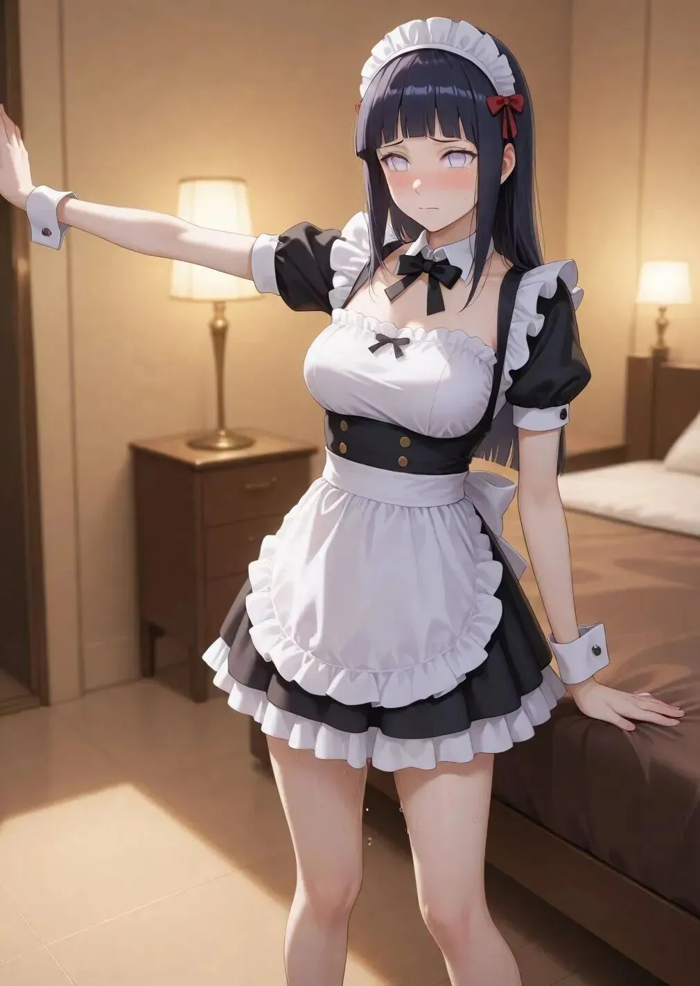 刚被安排到包间区域帮忙,雏田就遇上了小状况:转身时裙摆轻轻勾到了桌角,她慌忙伸手稳住快要歪掉的台灯,连带着耳尖都 “唰” 地红透了。明明已经在心里默念了一百遍 “不能出错”,可手心还是悄悄沁出了薄汗,脸颊的粉霞顺着下颌线往下漫,活像个被风吹红的水蜜桃。