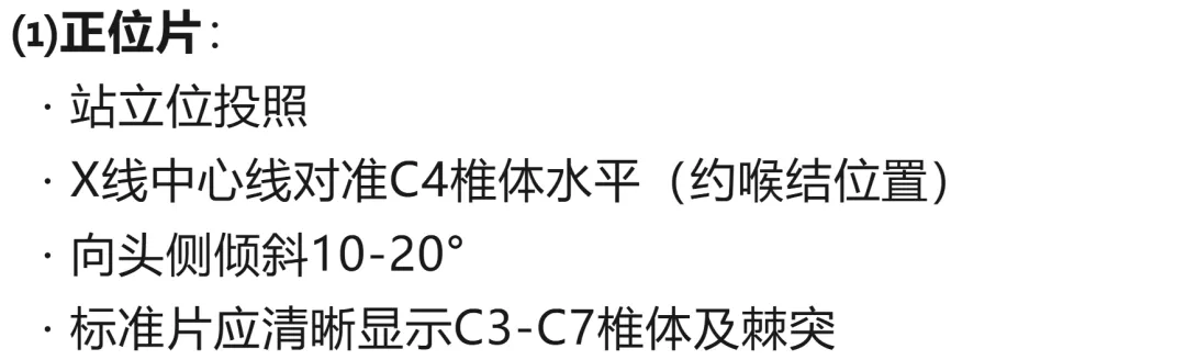 1. 正侧位片:颈椎检查基础体位