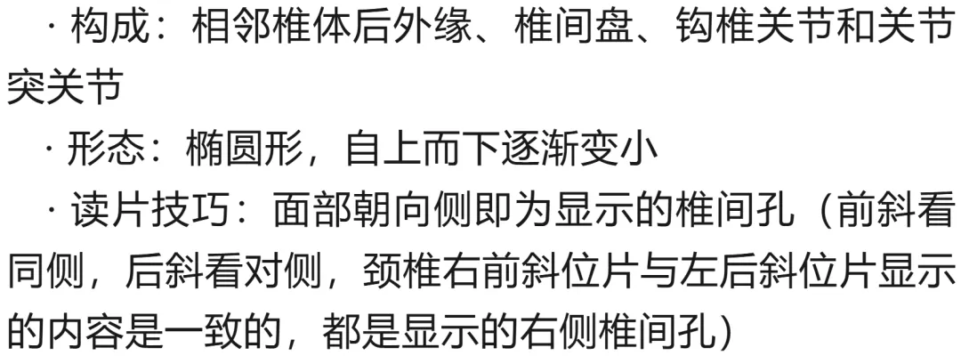 2. 双斜位片:适用于神经根症状患者