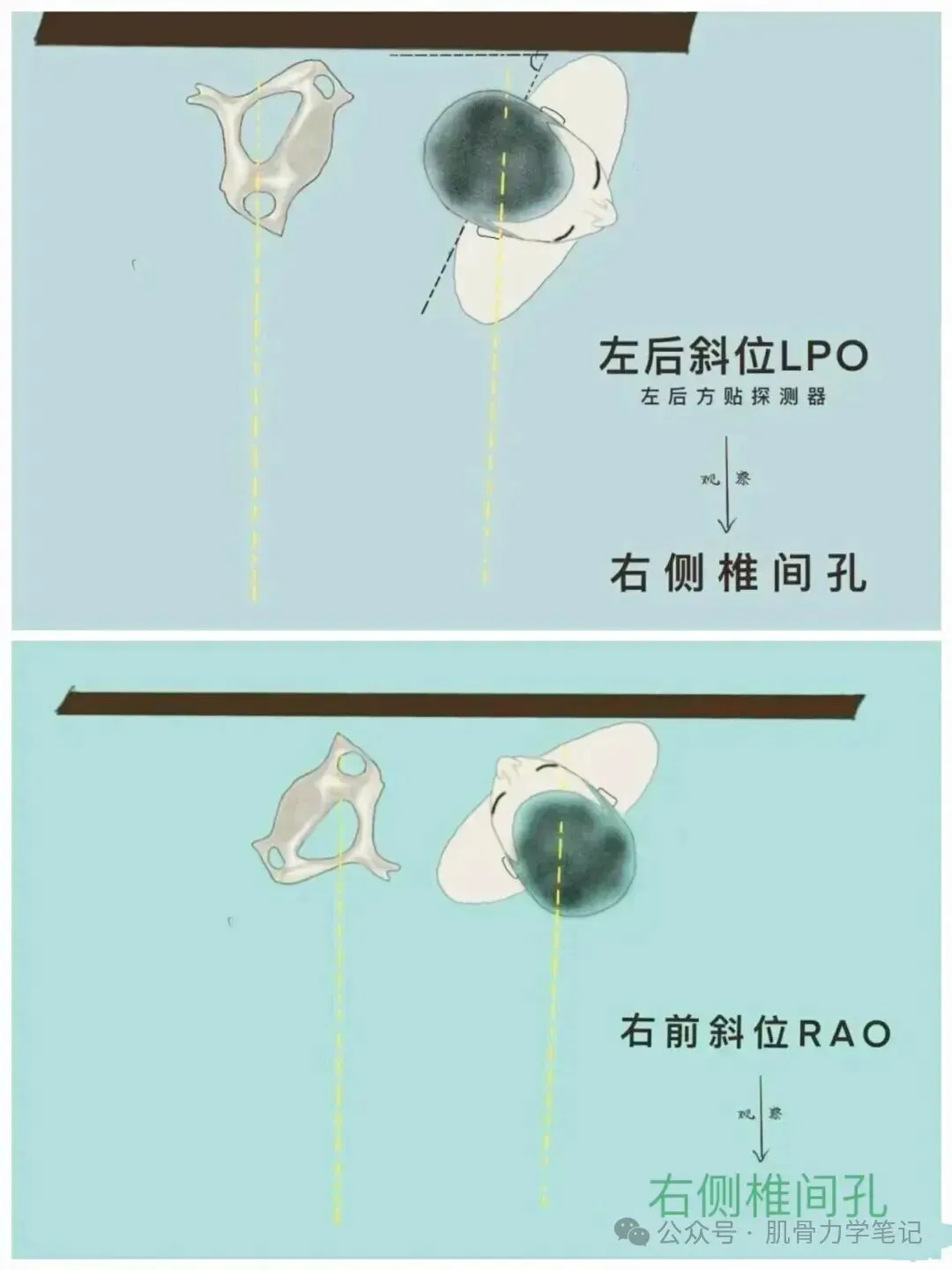 2. 椎间孔观察: