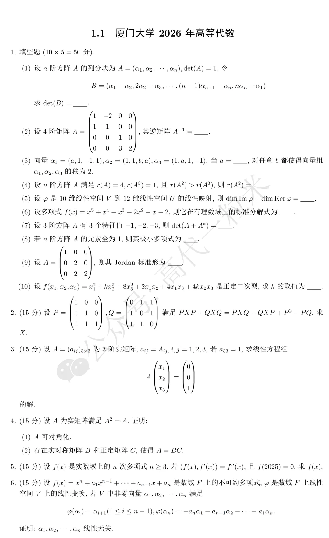 向量组线性无关的证明(3,3,3)、不可约多项式的应用(1,3,3)、循环子空间(1,3,3)