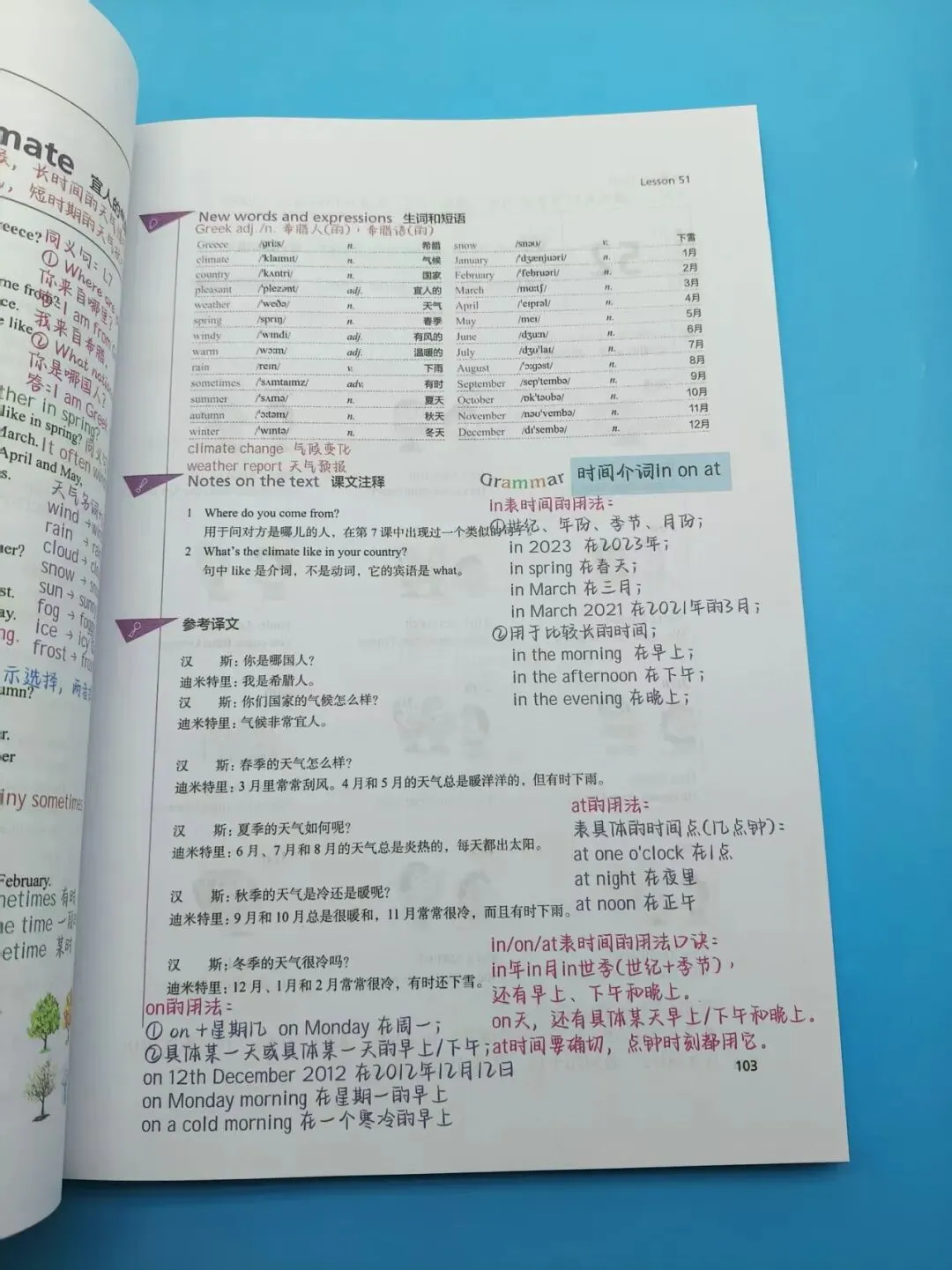 ❶ 拒绝黑白枯燥!每课都用不同色系区分主题,动词、名词、介词用不同颜色标注,视觉记忆超深刻,记知识点像看漫画一样轻松~