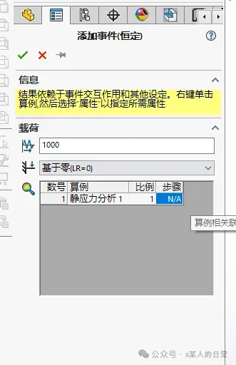 做疲劳分析前需要先做一次对应的静应力分析,才可以在疲劳分析中选择相应的事件: