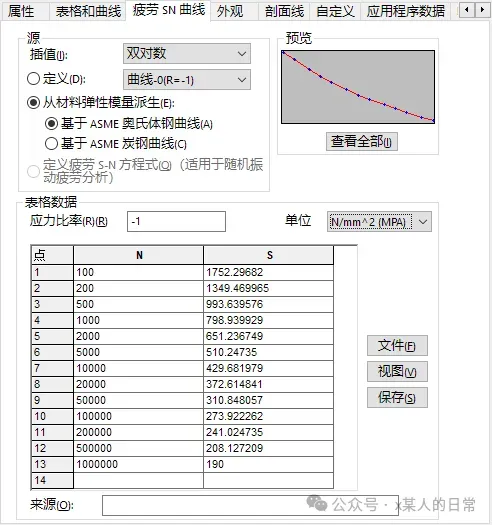 ②疲劳的相关参数获取困难,包括:S-N曲线、疲劳缩放因子
