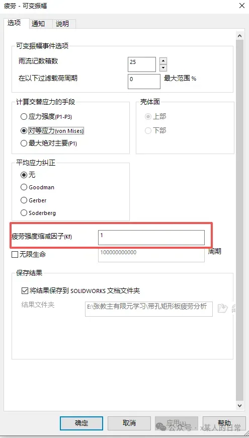 实际产品在生产过程中,材料的寿命会受到诸多因素的影响,如零件方面:应力集中程度;工作条件方面;材料方面等。综合以上因素考虑,即为影响零件疲劳强度的综合影响因子,也成为疲劳强度缩放因子。