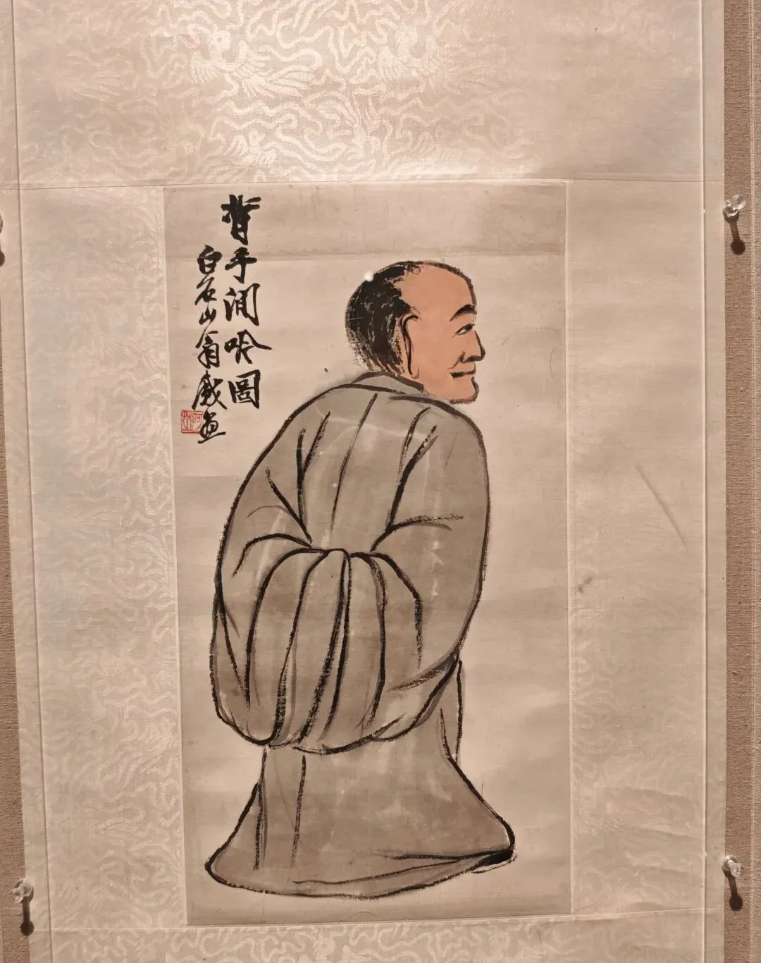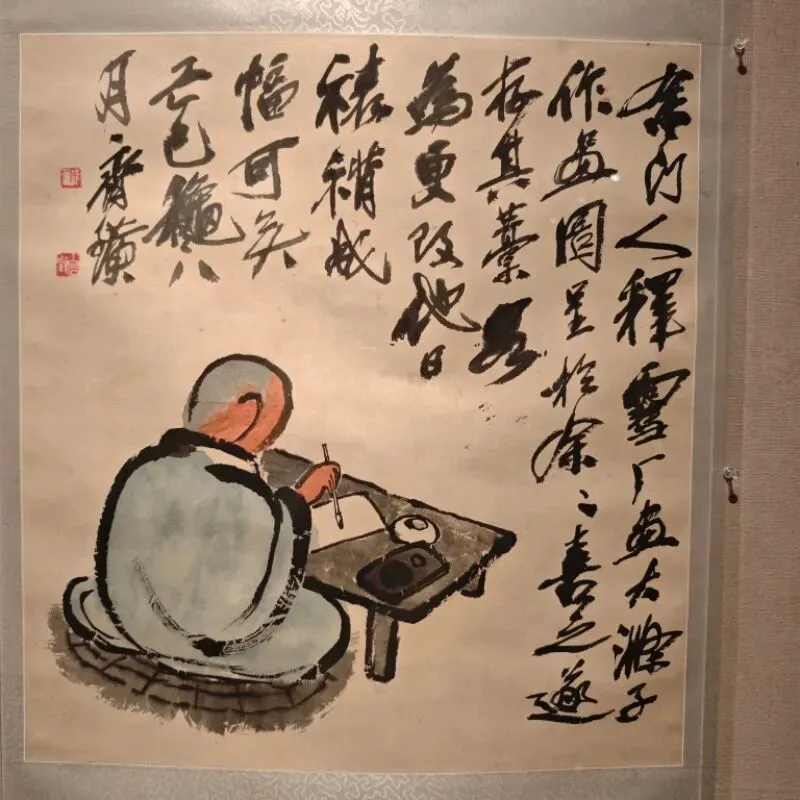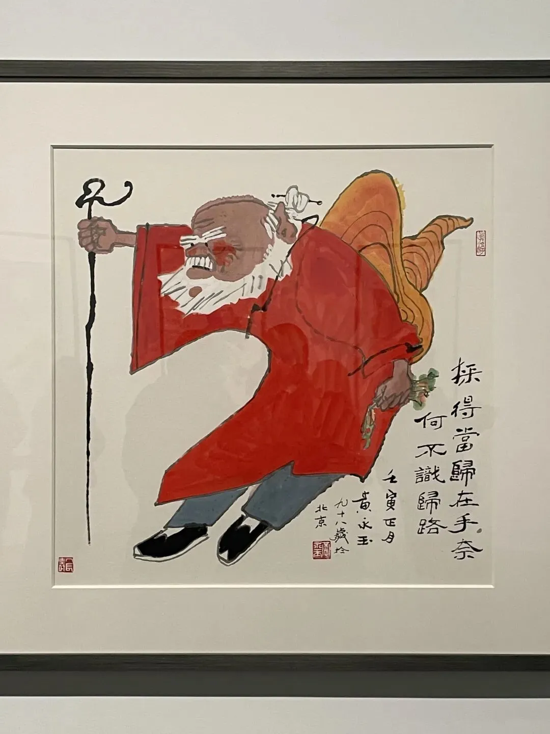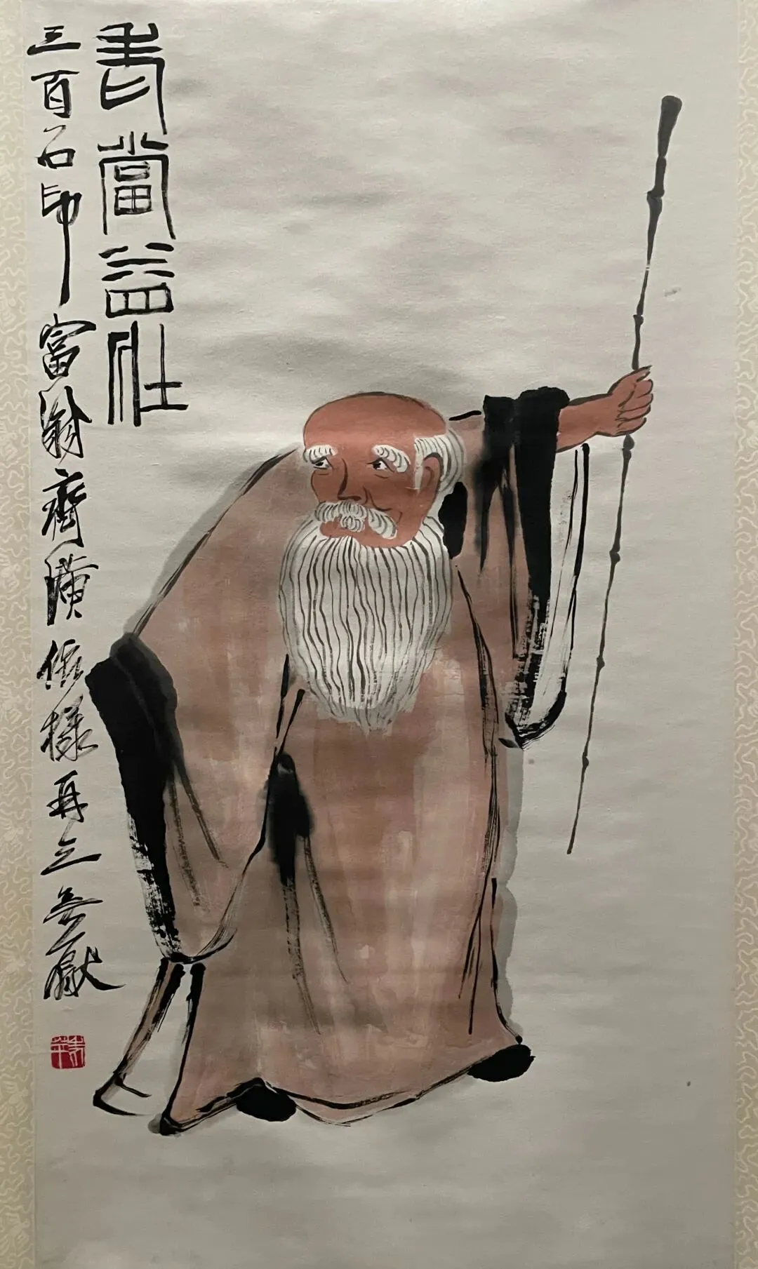 然后是站姿,同构图的两幅作品。这种持棍的造型和精神状态让我想起黄永玉和李老十的作品来,也是趣味性和表现力很好的作品。张大千著名的东坡图也类似造型,但风格明显区别。