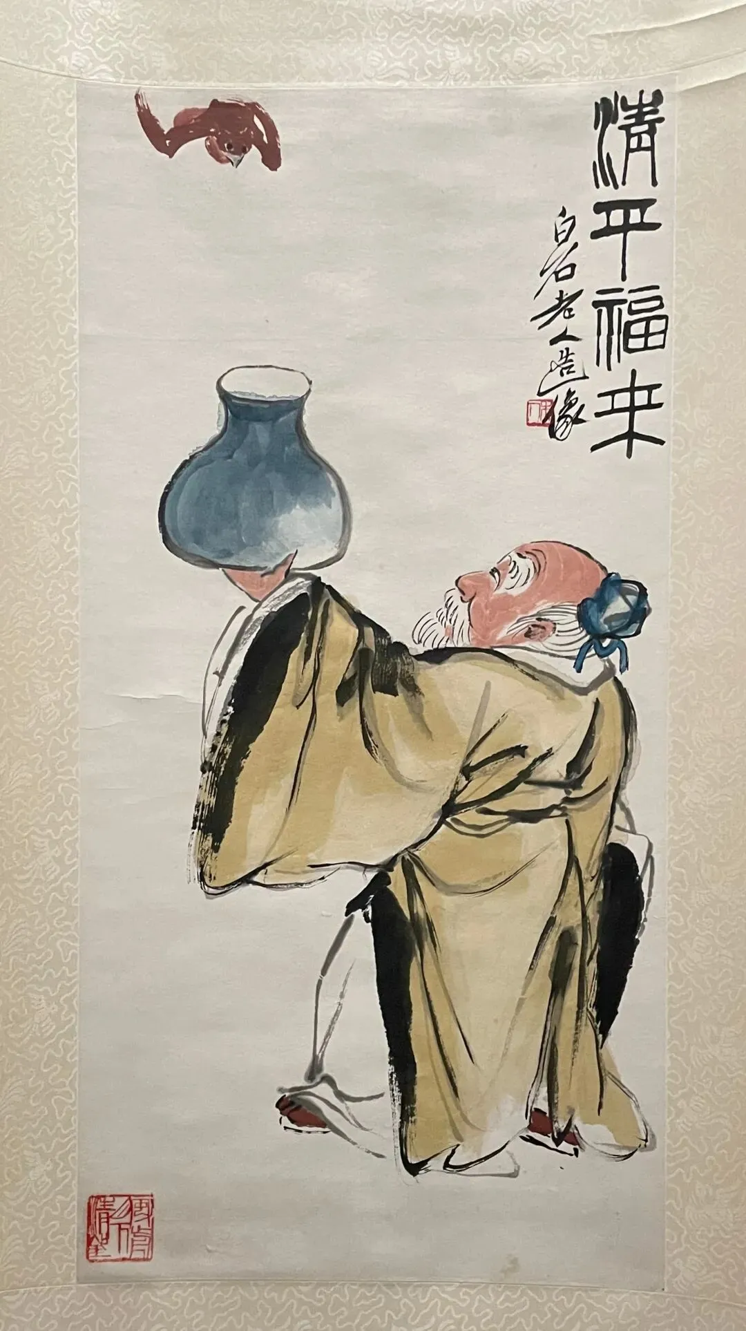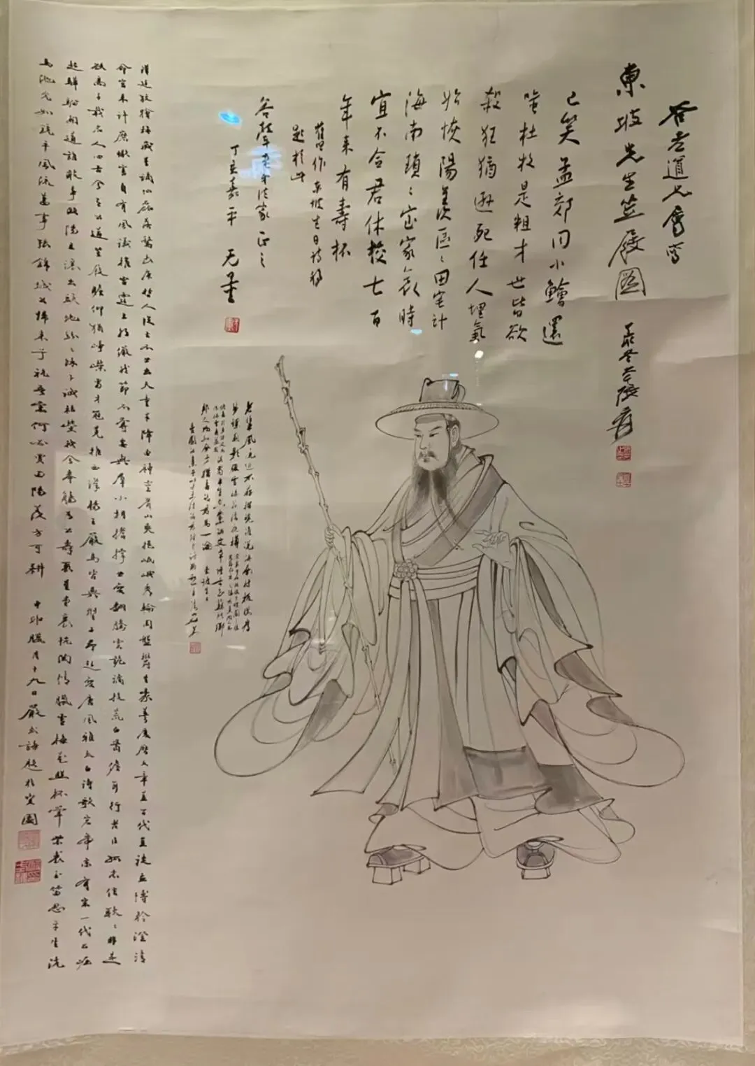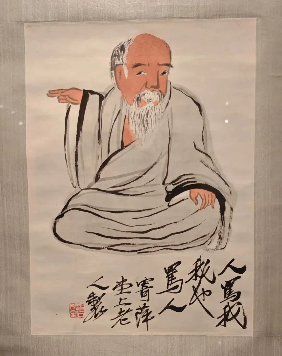 然后是站姿,同构图的两幅作品。这种持棍的造型和精神状态让我想起黄永玉和李老十的作品来,也是趣味性和表现力很好的作品。张大千著名的东坡图也类似造型,但风格明显区别。