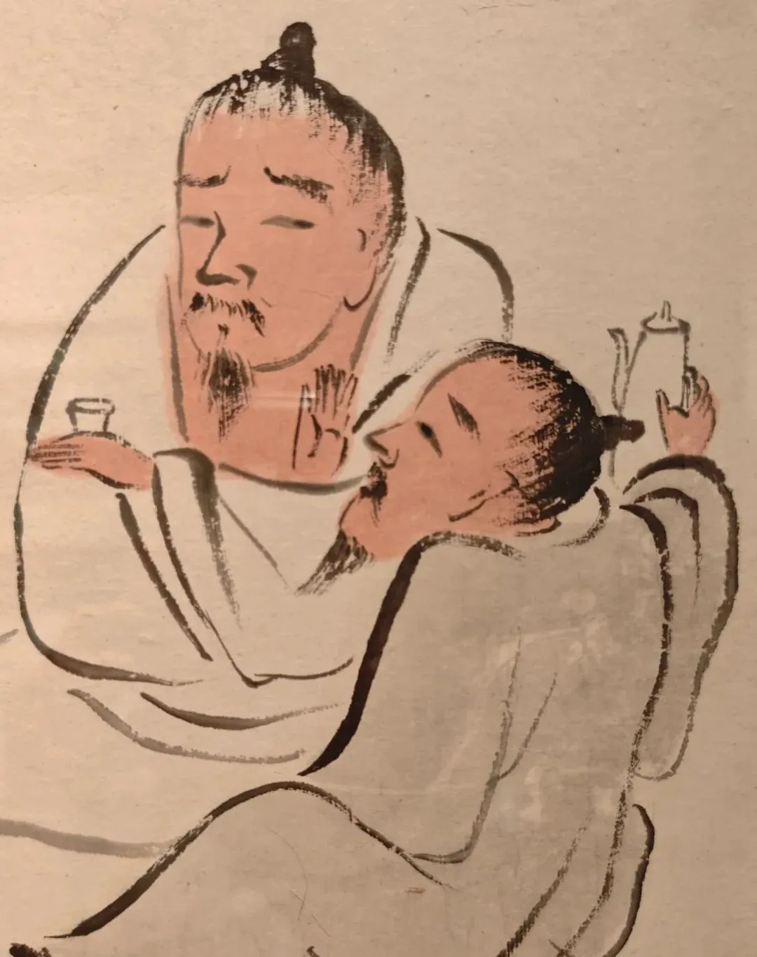 他的老翁,构图简单(基本上人物占据中心位置,而且最多两个人)、背景简略、姿态各异。就按照人物姿态分享下。首先是坐姿