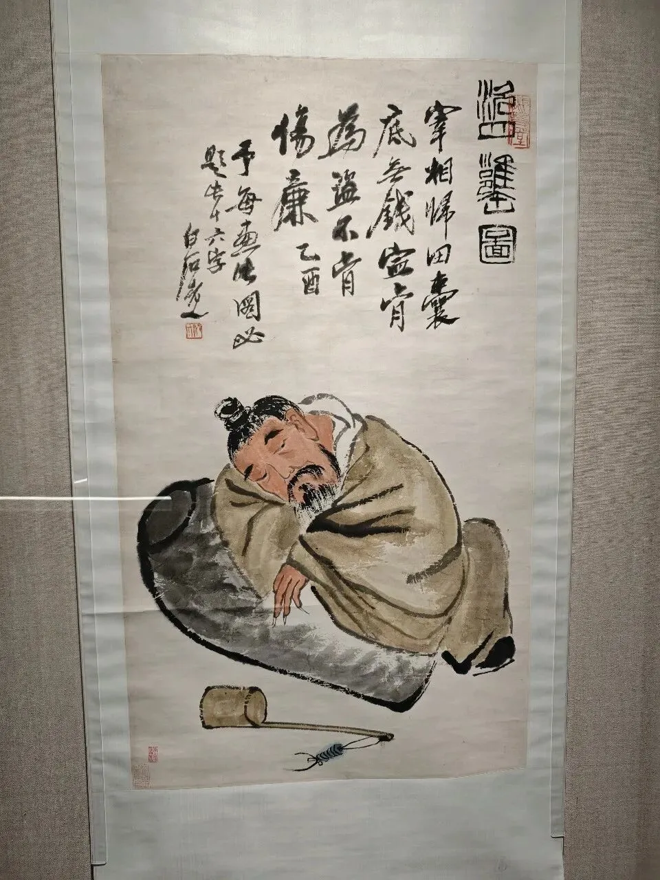 齐白石的人物画没有花鸟画常见,但笔下人物的精神面貌昂扬鲜活,情绪表达更加奔放,短短的落款更是必不可少的点睛之处,非常有意思。