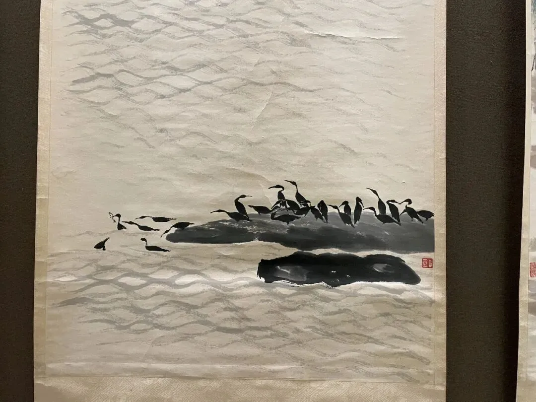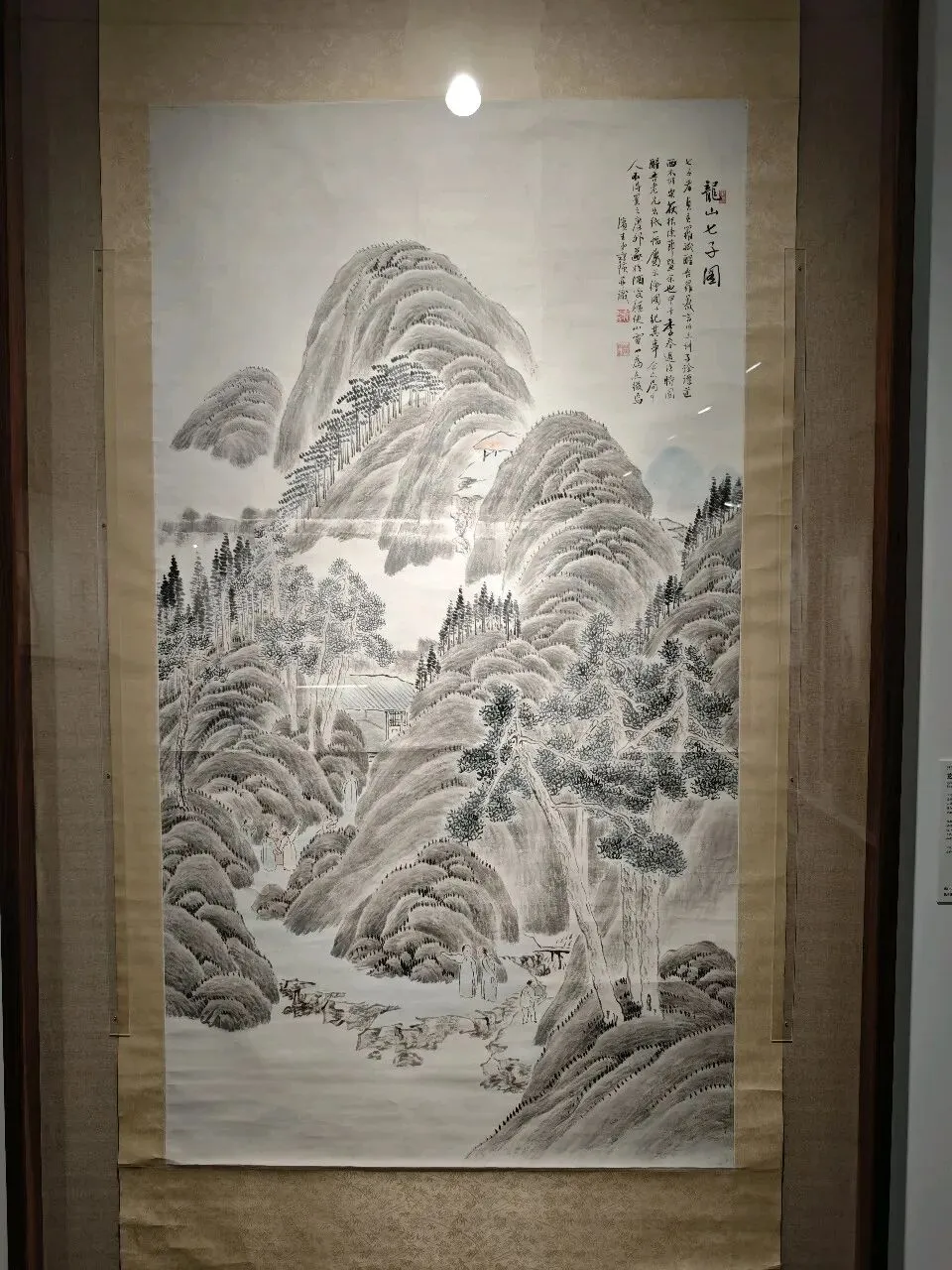接下来就按照昨日广汇美术馆所见齐白石作品为引子,串起近年来所见白石老人精品,也算是这本书的个人读书笔记。首先是山水绘画专题,这张为齐白石30岁左右的《龙山七子图》。齐老青少年时期拜周之美学木匠(雕花),27岁时被恩师胡沁园发现,才转到绘画和诗词领域,认识湘潭地区的家族子弟(胡家和黎家)。33岁被推举为龙山诗社社长,农民的孩子被富家子弟推举为社长肯定诚惶诚恐,但公子们说你年纪最大正合适,哈哈哈,可以说齐白石的一生都是所在圈子里年纪最大的。这张画就是这个时期画的,这张画的绘画水平可以说平平无奇,但是其历史价值和意义非比寻常。