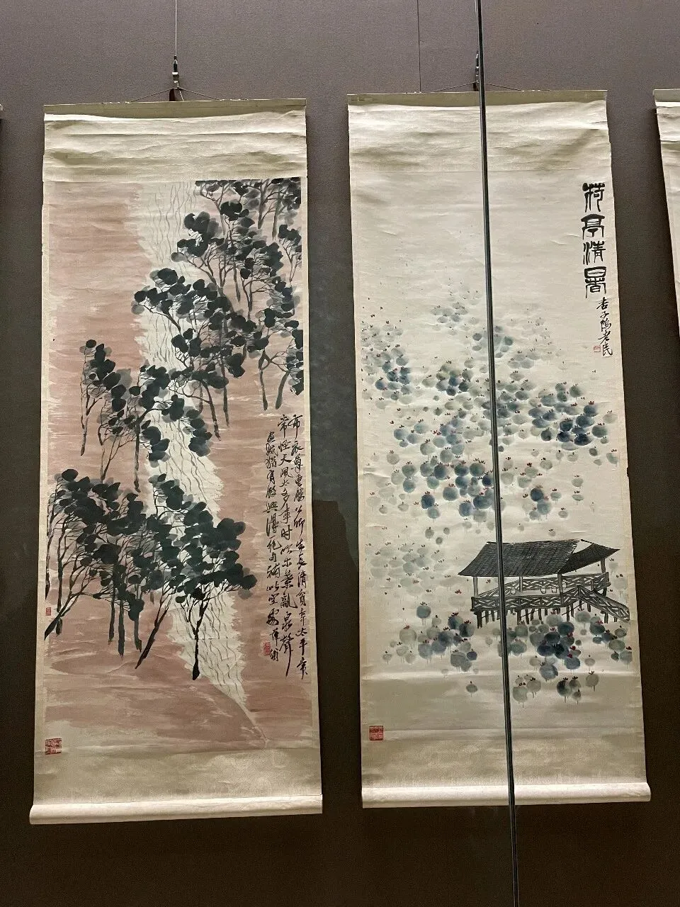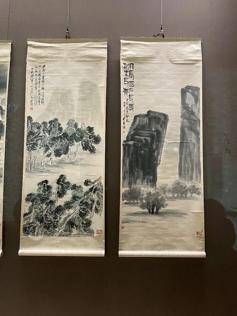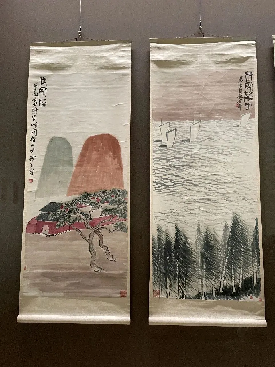 白石老人山水画起点虽然低,但是他一直在努力突破,1902年到1909年他跟着富家子弟们到处游历名山大川,1910年起画《借山图》50余册,又画了有名的《石门二十四景》,此时仍然偏工细一路,但已经有大笔挥墨的轮廓。1917年避祸搬到北京,初入京华万事不顺,就仔细打磨自己的艺术创作。到1921年的《山水册》作品面貌已经突出,册页的山水作品已经成熟。下面三张是成都美术馆展过的作品,具体什么时期忘记了,但感觉是这段时期的。立轴作品,齐老也一直在探索,各种路数都尝试一下,这张嘉德秋拍夜场封面,1922年致曹锟的云山深涧,笔路细致繁密,造型重重叠叠,装饰性强但个性表达不多,就是探索期的代表佳作。接下来是展示的是广汇美术馆的拍卖记录作品《山水十二条屏》,这组图是他立轴山水的成熟标志。现场细节因灯光问题没拍,而且感觉笔墨偏平不立体(瞎猜是复制品)。但没关系,有成都美术馆展过的《山水十二条屏》,应该是齐白石入川时为王瓒绪画的,更加成熟和精到。据说,王当时答应重金请齐老作画,结果打了三四折,给齐老气的不行。此后就假装不认识这位,也没这档子事,后续被追问就说是有个王某人云云。部分细节图如下,可以看出非常用心,可以说是真正的巅峰之作。下面是中国美术馆展过的齐老山水,一看就是为了谋生的。这张是成都美术馆展过的1938年的《桃花源》佳作。这张作品为北京画院藏,题款如下:平生未到桃源地,意想清溪流水长。窃恐居人破心胆,挥毫不画打鱼郎。戊寅,时居燕京城西,白石齐璜。本想着一口气把白石老的山水、人物、花鸟、书法一并给罗列完,但内容实在是太多,就容我分几期罗列再说。