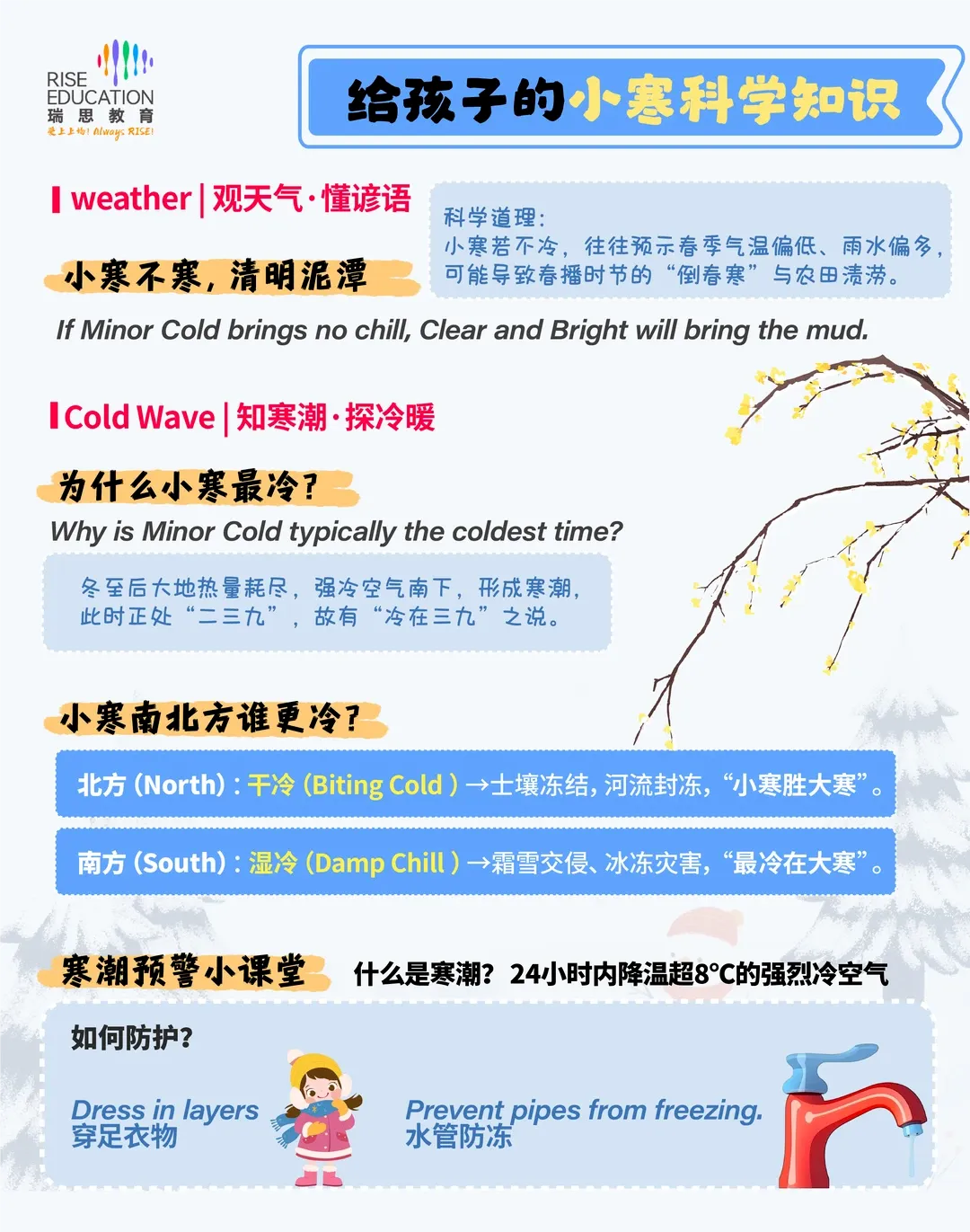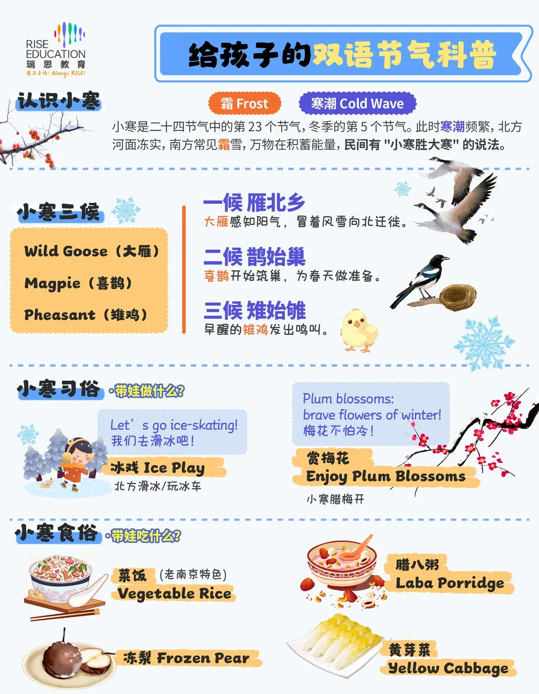 读读古诗“小寒连大吕,欢鹊垒新巢。”感受元稹笔下的小寒,冷冽中充满生机。在“欢鹊垒新巢”中认识 magpie,在“拾食寻河曲”里学会 forage...