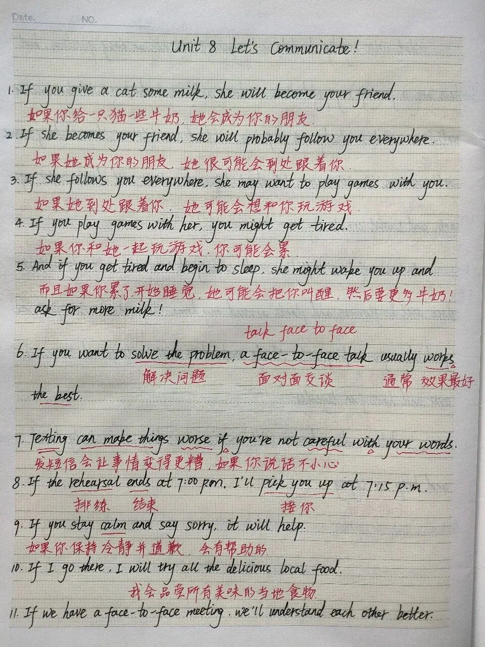 八上英语共八个单元,已初步学完,一本牛皮本刚好写完☺️。我比闺女的速度稍快,走在闺女的前面的好处是,现在检查英语作业基本上不用去查书或手机了,速度快了很多。而且能和闺女随时随地进行一些英语交流了。😊