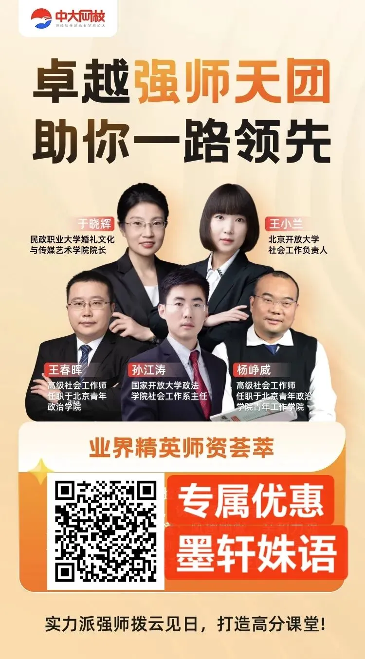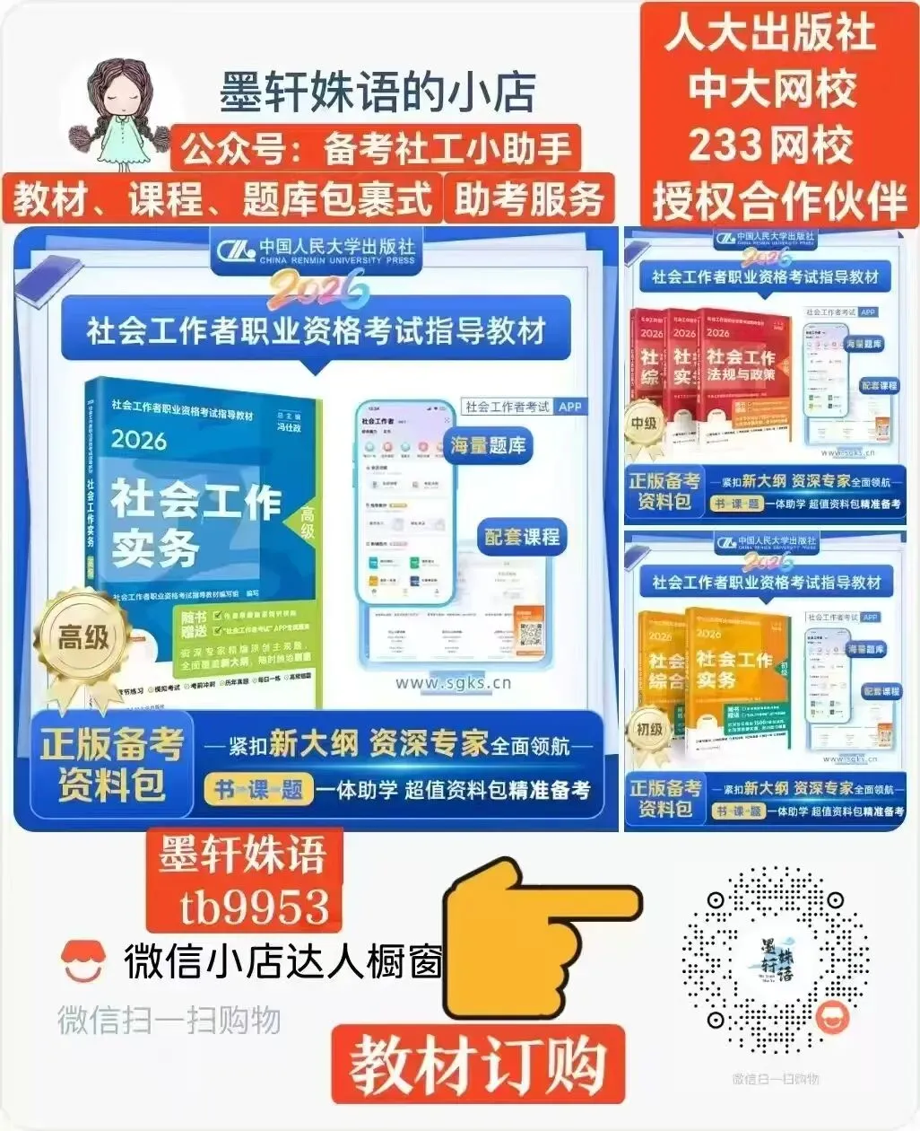 小编是谁?自述:墨轩姝语(tb9953),2023年直接报考社工中级并顺利拿证、喜欢以学习对抗虚无的打工人。社工小白,等待备考社工高级,不放弃对社工知识的学习,希望温故而知新,愿能与社工伙伴一路同行、交流备考,共同成长!