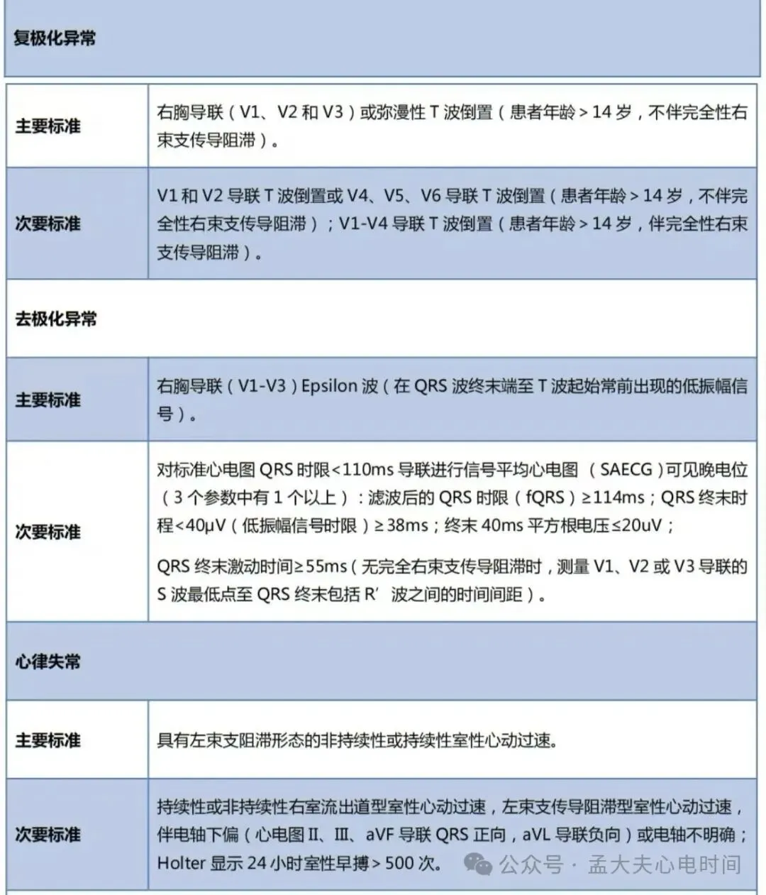 · ARVC:遗传性、进行性心肌病、有ε波、T波异常、QRS增宽。