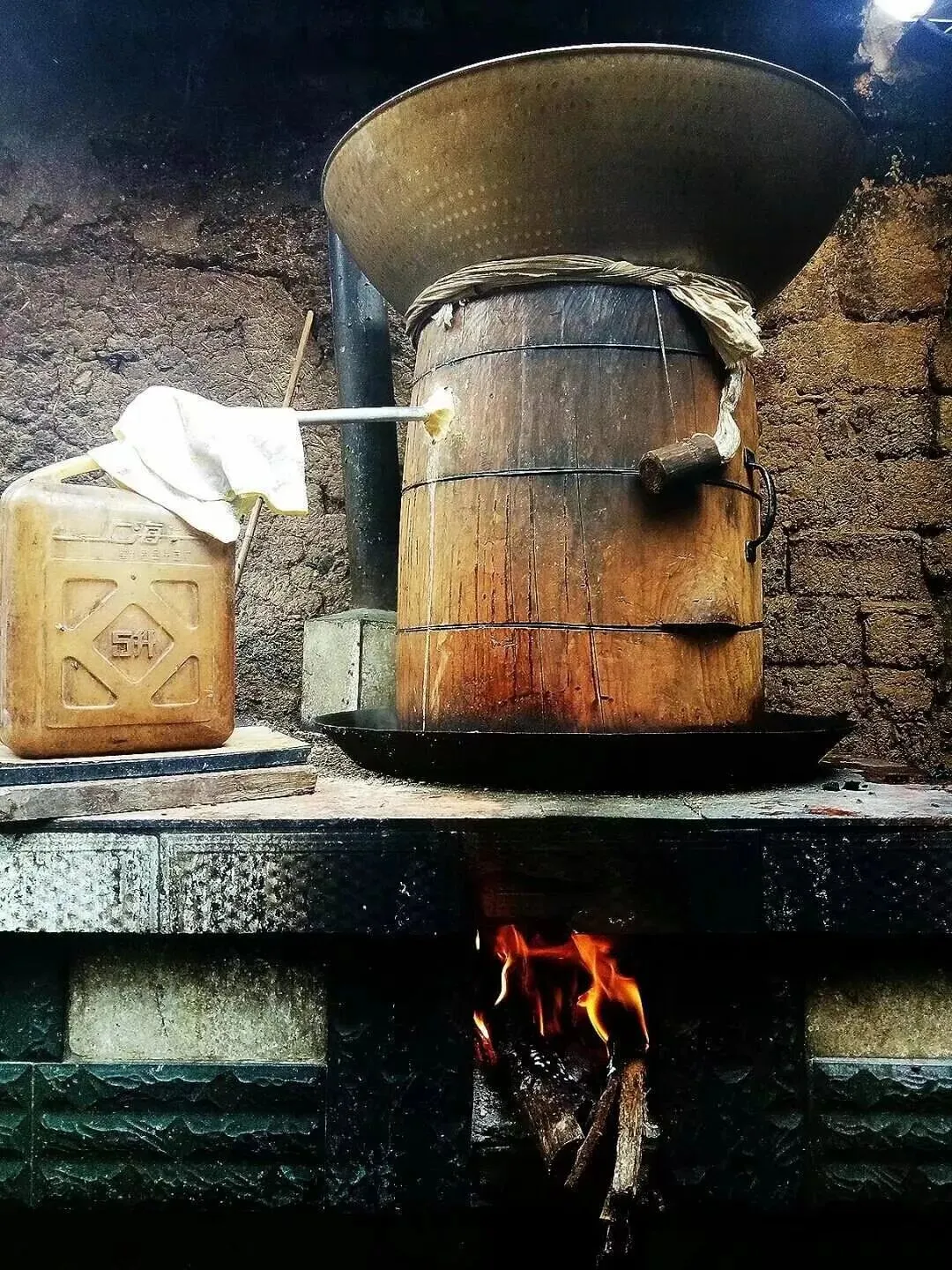 岐伯答曰:下焦者,别回肠,注于膀胱,而渗入焉;故水谷者,常并居于胃中,成糟粕,而俱下于大肠,而成下焦,渗而俱下。济泌别汁,循下焦而渗入膀胱焉。(此处指出水谷之气的路径各有不同,谷气在胃中蒸化成精微之气以后散精于肝,水气则是在大肠之中蒸化而形成津液,清液上走于肺,浊液则归于膀胱,通过尿道排出体外,糟粕通过魄门排出体外。谷在中焦蒸化为精气,水在下焦蒸化为津液,这便是上文所谓营出于中焦,卫出于下焦的道理所在。这个过程就如同酿酒,且看下图。)