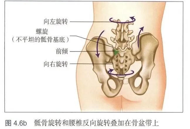 腰椎会向相反方向旋转(如髋骨右旋则腰椎左旋),此为Ⅰ型机制(旋转与侧屈方向相反)。