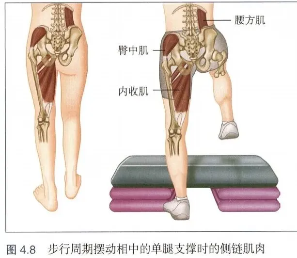 肌肉:支撑侧臀中肌、臀小肌、同侧内收肌 + 对侧腰方肌。
