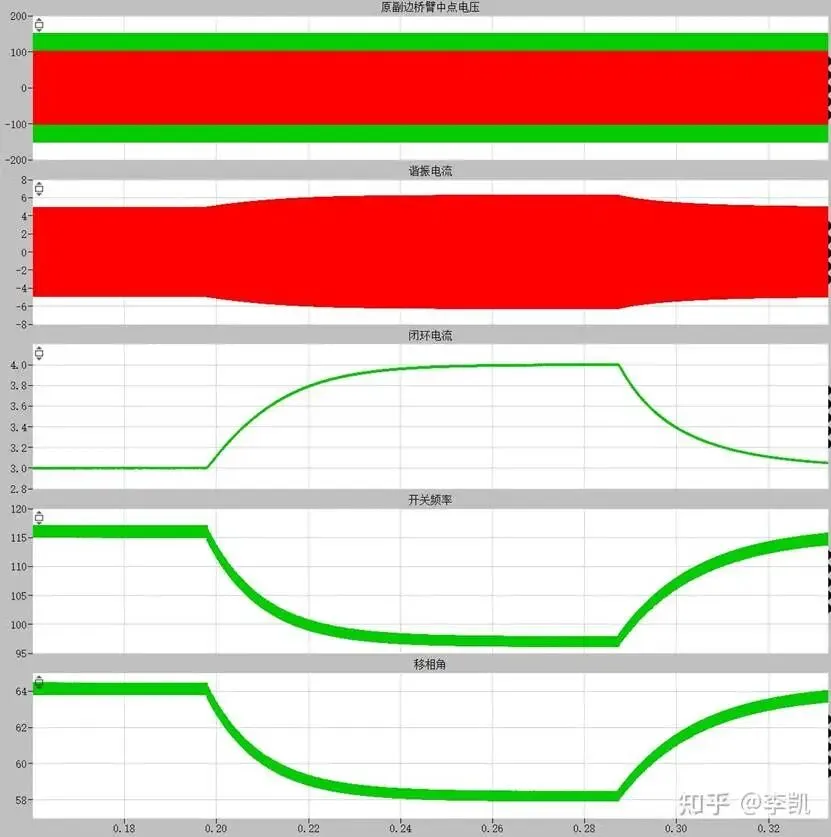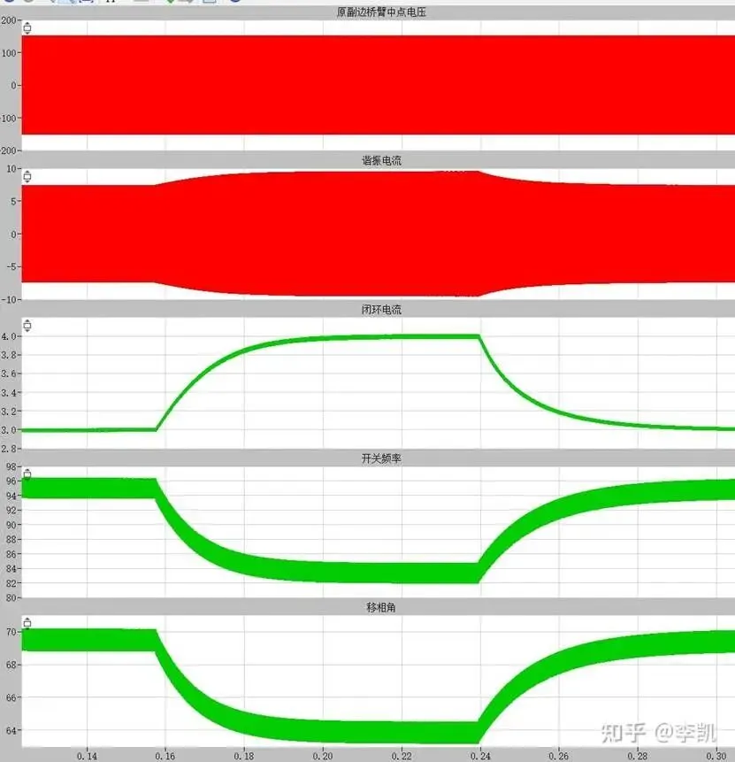 动态闭环,增减载3A和4A负载切换能闭环,动态调节开关频率和移相角;