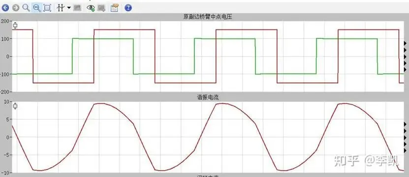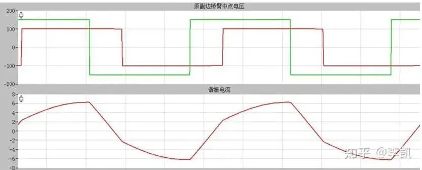 谐振电流滞后桥臂中点电压,感性电流实现软开关;