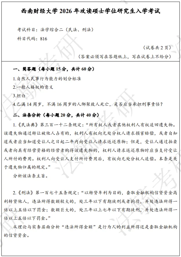 就此题向大家展示法毓辅导班的法条分析答题方法: