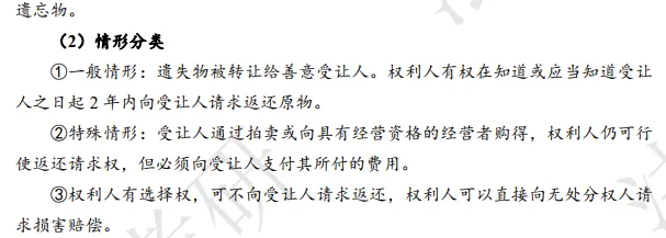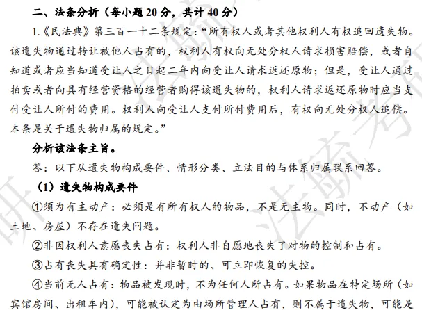 第二步,回答基础知识。尽管我们思维上的第一步是进行定位,但是在回答题目的第一环节,需要厘清其核心概念、构成要件。在本题就体现为遗失物的概念与情形分类。