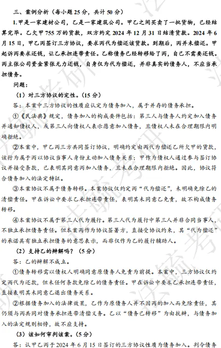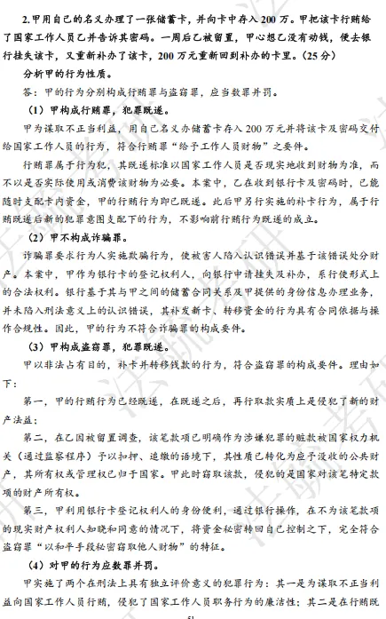第三步,回答背后的法理。分析法律条文不能只停留在“是什么”,还要说清楚“为什么”和“怎么样”,即其背后的法理基础和法律效果。最为简单的法理分析就是“立法目的”,回答即可得分。基础知识储备较好的同学还可以回答“理论争鸣”“历史沿革”等部分。