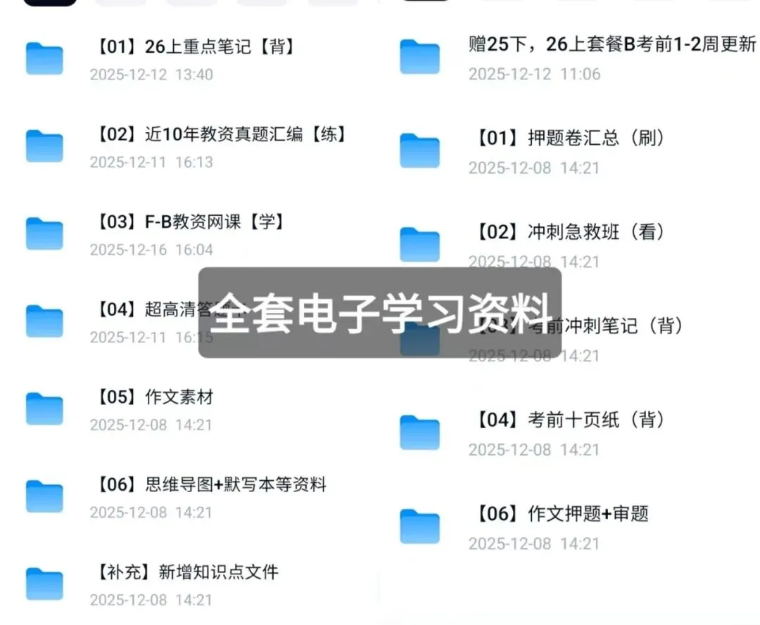 【26上半年全程深度伴学】✅ 群聊即时答疑:你的疑问,老师与学友随时讨论、即时破解,不让问题过夜。✅ “每日一问”与学习打卡:群内每日精练,固化知识,培养备考节奏感。✅ 学习成果检查:定期群内反馈,清晰看到进步轨迹,及时调整方向。✅ 作文与简答题专项突破:群内带背、范文解析、素材实时分享,攻克主观题难关。✅ 信息差清零:考试动态、注意事项、临场技巧,第一时间在群内同步。