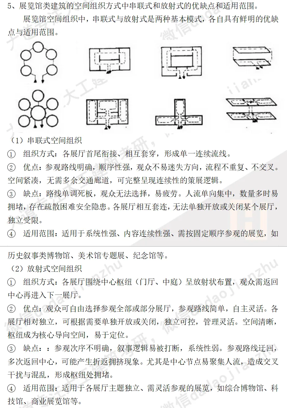 5、展览馆类建筑的空间组织方式中串联式和放射式的优缺点和适用范围。