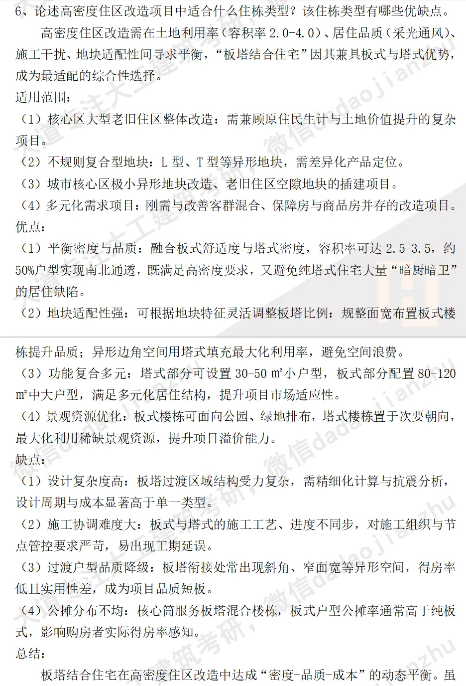 6、论述高密度住区改造项目中适合什么住栋类型?该住栋类型有哪些优缺点。