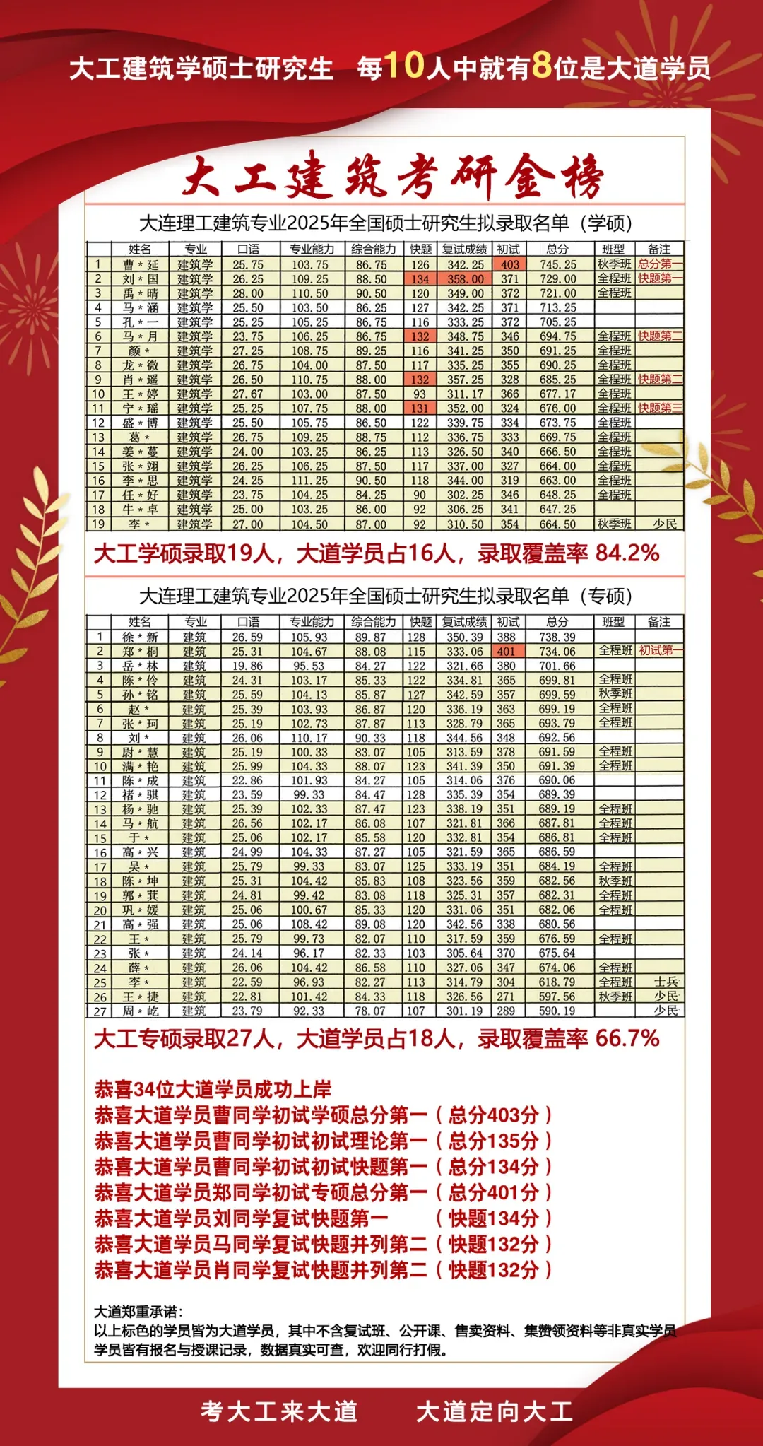 注:名单来源于大工官网,经整理展示,标色为大道学员,数据真实可查