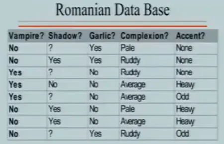 今日问题:‘校园抓鬼’——你新转学到一个神秘的校园,周围人可能隐藏着吸血鬼。如何快速、低成本地把他们揪出来?这是一种生活智慧:关于如何在复杂世界里,用最小代价做出靠谱选择。你有一些测试方法(如“是否有影子”“是否怕大蒜”“口音如何”),第一个测试方法(比如影子测试/大蒜测试/口音等)假如有三种结果,得有且只有一种结果可以进行到下一步测试,继续...因此,这里我们希望构建一个测试集,得到不同的结果,然后可能还需要不同的测试,直到最终确定结果。这种通过一系列测试逐步缩小范围、最终完成分类的树状逻辑结构——称为识别树(Identification Tree)(不是决策树,但思想同源。)这个数据集和上节课最近邻数据集有区别,区别是什么呢?如果用最近邻去识别吸血鬼,会有什么问题?①这些特征不是数值的;这不是数值数据集而是符号,你不能说有0.7个影子,要么有影子要么没影子要么不能确定。④有些测试可能比其它代价更大;例如判断影子你需要让他走到阳光下这个行动,这个代价可能会更大一点。我们要建立一棵好的树。需要看哪种测试能最好的将事物分开,哪种能最好的在下面建立子集,让子集尽可能同质。每个测试有成本代价(比如让人走到阳光下可能打草惊蛇)。我们希望这是一棵好的测试树,最小代价,如果代价相同,那就是最小测试数。这套策略,用尽可能少、代价低的测试,得到可靠的结论。那么树的底端每一个叶子的测试所生成的集合都是均匀的,同质的。我们想要最后所有普通人在一起,吸血鬼在一起。希望这是棵小树,最简单的树,而不是大的。(大英博物馆算法就太大了。)那么如何安排这些测试方法才能让他成功识别呢?我们是如何确定先做影子测试?再做另一个测试?简单的想法就是看看有多少样本在同质子集中。看哪个测试能立即产生最多的同质子集(即该分支下样本已完全属于同一类)。例如“影子测试”:无影子→全是吸血鬼;有影子→全是人类;不确定→混合,需进一步测试。永远选择从最优的开始。但数据量大时呢?很难有测试能立刻得到任何同质子集,需要有更精密的方式去测量分支底端的这些集合有多无序,即无序度(Disorder)——借用了信息论中的熵的概念(信息的本质),用来衡量一个集合的“混乱程度”。良好生活的一大启发:碰到问题时问知道答案的人,这比谷歌(百度)还方便且工作量更小。设无序度集合D,是一个二进制的数据集合,数值要么正要么负,我们设定P是正,N是负,T=P+N总数,等式如下。画一条曲线,假设横轴测量的是正值数目同总数的比值,取值范围就是0到1。情况1:正数和负数是均分的,相等的个数,那么结果D=1。情况2:全是正数,结果D=0。(结果其实是-0*以2为底0的对数,不能直接想当然认为0乘以任何数都是0这样,需要用到洛必达法则去无限逼近,求导。不过结果确实是0)这三条曲线,①是直线,②是高斯曲线,③是无序度的结果曲线。(自然界并不一切都是高斯曲线)但是这个曲线表示的这个方法并不一定是最好的方法,上帝不会偏袒任何一种可能,我们用这个是因为他相对很合理,用来测集合的无序度很好用。当我们用熵值计算各测试的无序度时,发现“口音测试”熵值很高(效果差),而“影子测试”熵值很低(效果好)——这我们会突然发现,数学计算和我们的直觉选择是一样的,直觉也很重要。数学在这里不是推翻直觉,而是为直觉提供支撑。好的理论,常让模糊的感觉变得清晰可循。那么如何测量这整个测试的质量呢?我们现在求无序度只是对其中一个测试的集合的。方法1:每个集合的无序度进行求和。这种方法给的权重是一样的,哪怕分支下面什么都没有,权重等同于下面几乎什么都有。方法2:求和加权。加权,就是再乘一个比值——该分支下的样本量/样本总量。【也可以应用到数值数据上,老师举例说我去帮忙测体温,我得到了非常多样本的体温数据,假如吸血鬼集中102华摄氏度,而人类是98摄氏度,我测的样本有正常人类有发烧人类有吸血鬼。哦莫那我当然可以用这个识别树的方法。其实我感觉有一点点像二分查找,比如在0到9中找到7,那我就是设定界限。然后不断比较大小,看他在哪直到找到目标。不过实际上是无序的数据,我们是为了分出同质子集,我们可以用相同的方法处理不同的数据,成千上万次,直到出结果。识别树虽清晰,但在实际应用中,(如医疗诊断,有一些人可能不喜欢看这个树,假设一位医生要判定是否是甲状腺病人,给医生一个树让他进行二十多种测试,这不如直接给他一个规则。)每条规则对应从根到叶的一条路径。之后还可合并、简化,形成最精简的判断逻辑。总之最后我们能得到一个最简单的机制。基于种种种种这些规则所确定的行为能得到一个完成的结果。最后来看看上面的方法和之前的最近邻算法的对比。最近邻中我们采用决策边界(每两点之间的垂直平分线)来划分不同的区域。而在识别树中,我们会先确定一条线,分成两个子集,然后再对每个子集采用同样的方法划分,因此最后得到的区域就会与最近邻有所不同。你不需要使用所有的测试,只需使用看起来对你有用的测试。这意味着测量技术变简单了,代价也更小,结果更容易解释和转化为行动规则。