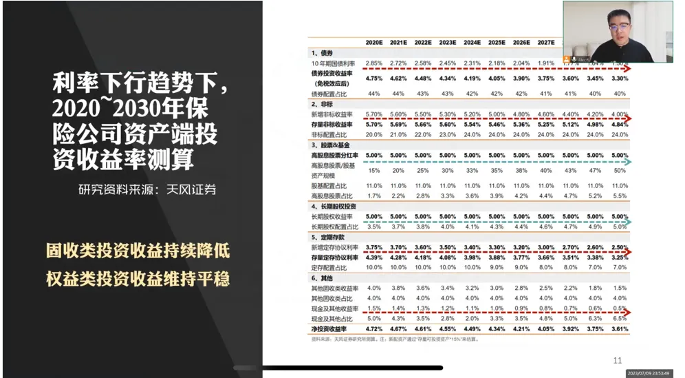 如下面三幅图,固收类投资收益持续降低,而权益类投资收益维持平稳,这时,保险公司最优的选择就是较低保证收益、较高预期收益的分红险产品。