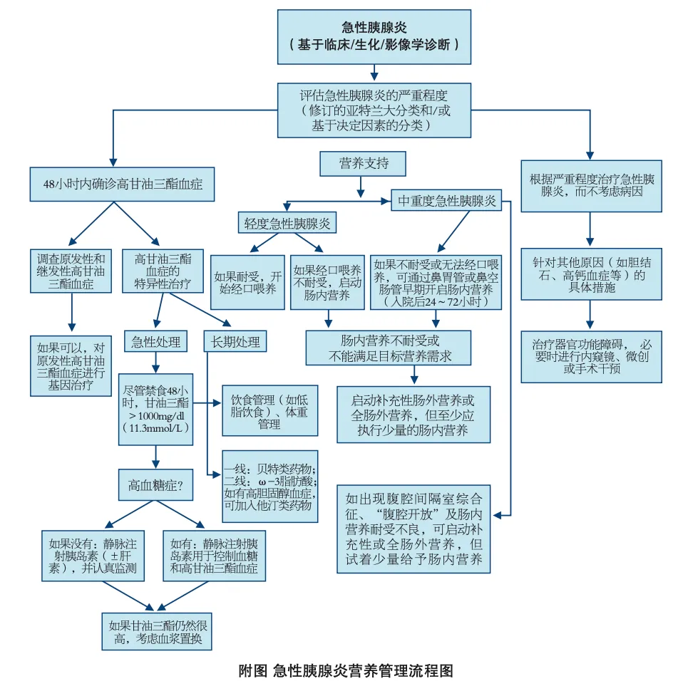 6.1合理的营养策略:1)在72小时后开始尝试口服饮食(如果能够耐受,可以更早进行)。2)如果患者不能耐受口服饮食,则应开始通过导管进行肠内营养。