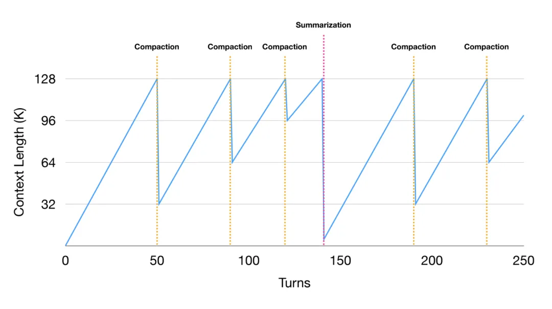 💡 所谓「收益递减点」,是指继续逐条压缩工具结果的边际收益开始下降——此时与其继续逐条微调,不如直接做一次整体摘要。这通常发生在上下文积累到一定规模后,冗余信息增多,继续压缩的复杂度和成本上升。