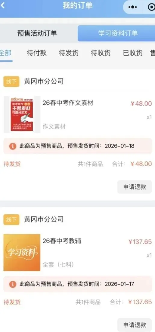 预售时间自2026年1月9日开始至2026年1月18日结束。学习资料将在寒假前统一配送到校。如错过线上预售,可于2026年1月31日之后前往宝塔大道77号新华书店线下购买。