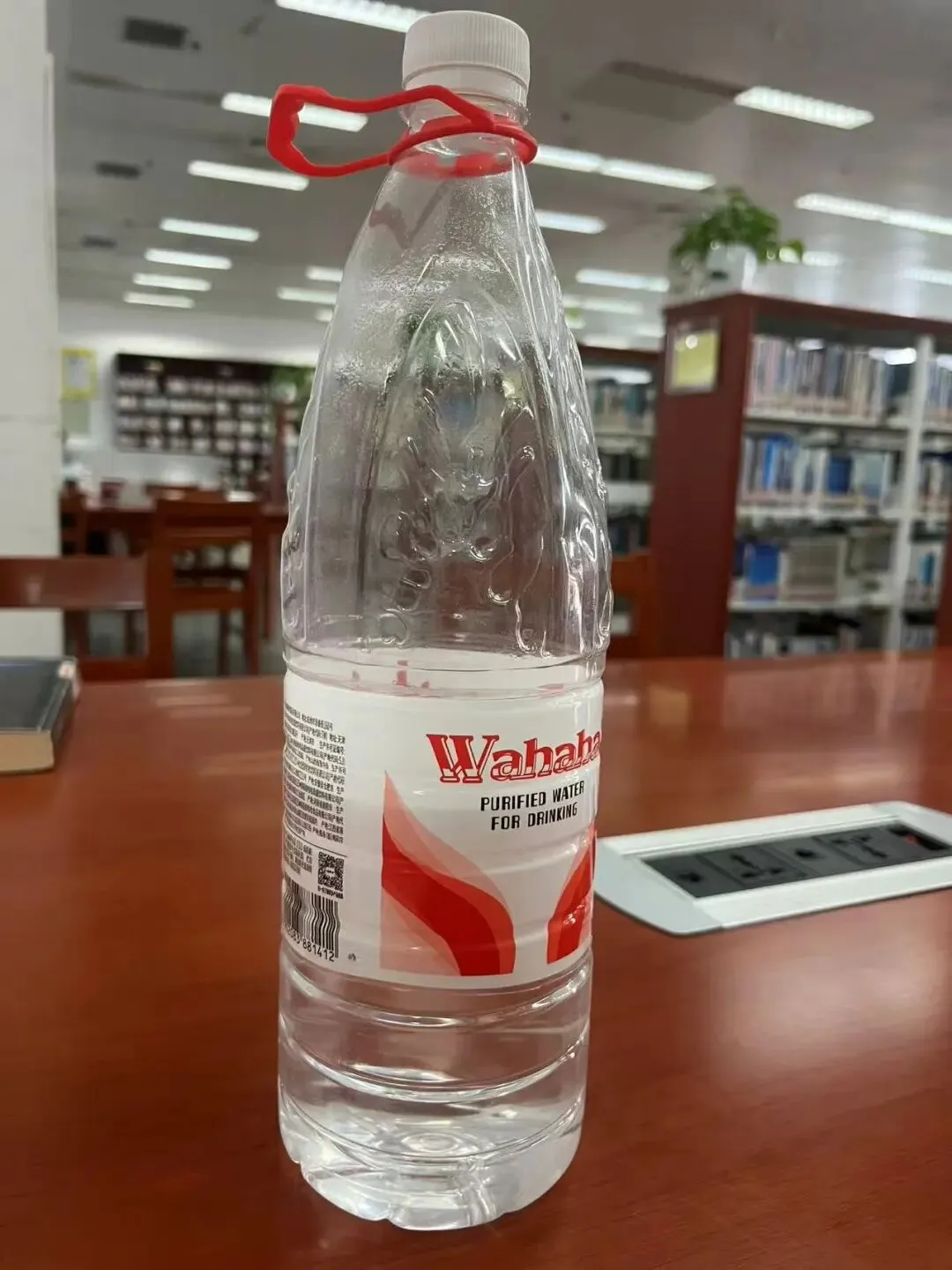 图书馆桌子上的这桶瓶装水。